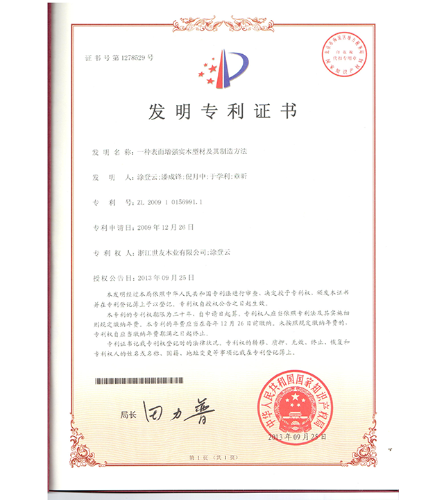 美國(guó)發(fā)明 表面增強(qiáng)實(shí)木地板及其制造方法