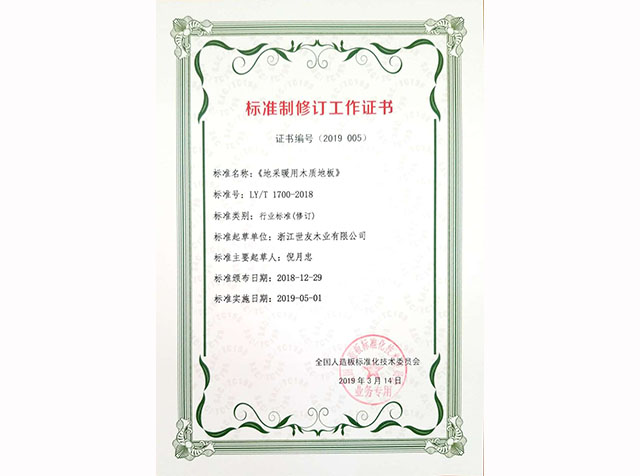 標(biāo)準(zhǔn)制修訂工作證書 地采暖